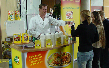 Etwa 20 Hersteller bzw. Händler beteiligen sich an der Firmenpräsentation in der Mensa Europaplatz in Frankfurt (Oder) und geben kompetent Auskunft zur Qualität und Herkunft der in den gastronomischen Einrichtungen des Studentenwerks eingesetzten Lebensmittel.