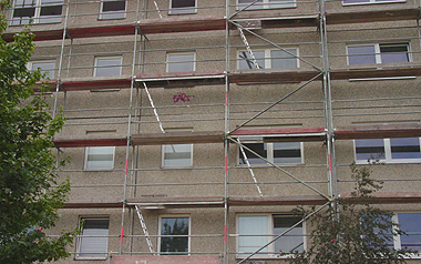 In der Wohnanlage Birkenallee in Frankfurt (Oder) werden die Hausaufgänge 44 und 45 saniert.
