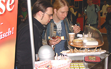 Etwa 15 Hersteller bzw. Händler beteiligen sich an der Firmenpräsentation in der Mensa Goethestraße in Eberswalde und geben kompetent Auskunft zur Qualität und Herkunft der in den gastronomischen Einrichtungen des Studentenwerks eingesetzten Lebensmittel.