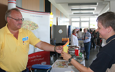 Etwa 22 Hersteller bzw. Händler beteiligen sich an der Firmenpräsentation in der Mensa an der BTU in Cottbus und geben kompetent Auskunft zur Qualität und Herkunft der in den gastronomischen Einrichtungen des Studentenwerks eingesetzten Lebensmittel.