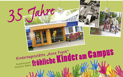 Die Kita „Anne Frank“ in Cottbus feiert ihren 35. Geburtstag. Aus diesem Anlass erscheint die Publikation „Fröhliche Kinder am Campus“.