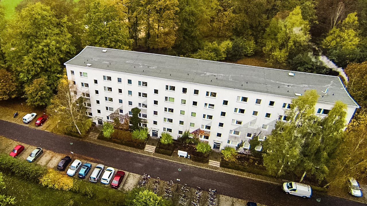 Maßnahmen: Sanierung in 4 Bauabschnitten nach Aufgängen; technische Gebäudeausrüstung komplett erneuern, Brandschutz ertüchtigen, Grundrisse bedarfsgerecht anpassen, Sanitär, Küche und Wohnbereiche sanieren, Zimmer möblieren, Dachdeckung erneuern, Fassade modernisieren, 2 rollstuhlgerechte Wohnplätze schaffen, 1 Hausmeister*inbüro verlegen, In- und Outdoor-Treffpunkt für Studierende schaffen